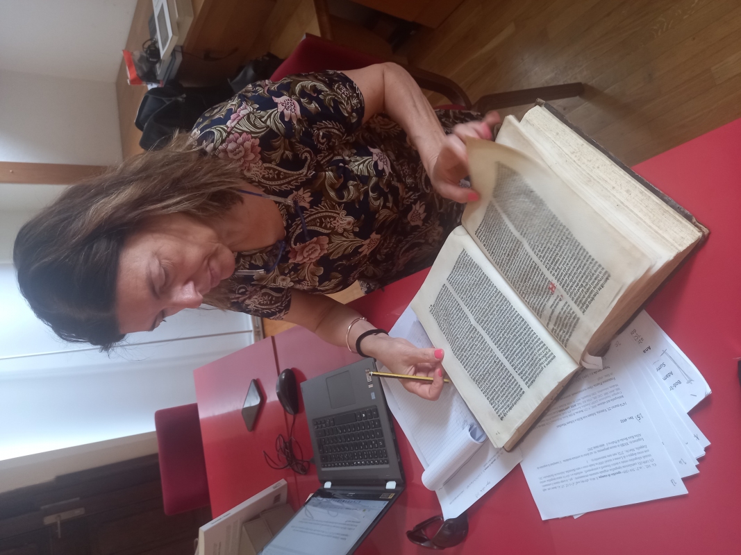 In ni slučaj, da je tudi zelo poškodovana knjiga, ki ni imela svoje identitete, po posredovanju na Sicilijo v roke ge. Anni Scala, dobila ime in mesto med inkunabulami. Gospod Menato je konec maja pripeljal s seboj še ekipo strokovnjakov (ga. Anna Scala s Sicilije in prof. Marco Palma iz Rima). Neprecenljivi garači, ki naše inkunabule popisujejo po vseh bibliotekarskih standardih. Ampak tukaj se ne konča. Jeseni pridejo v našo hišo ponovno, z njimi pa tudi ga. Claudia Giordano, ki je strokovnjakinja za knjižne vezave.